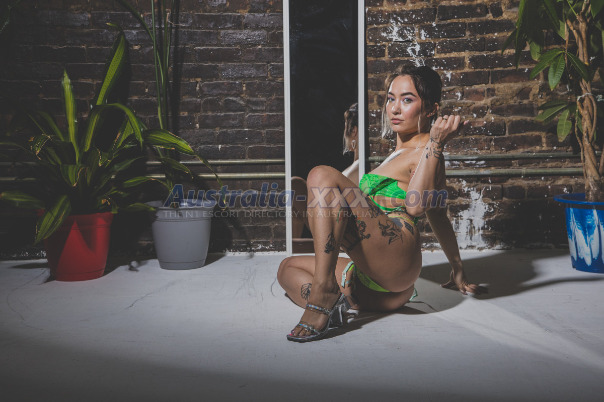 Half Asian tattooed model and gymnast